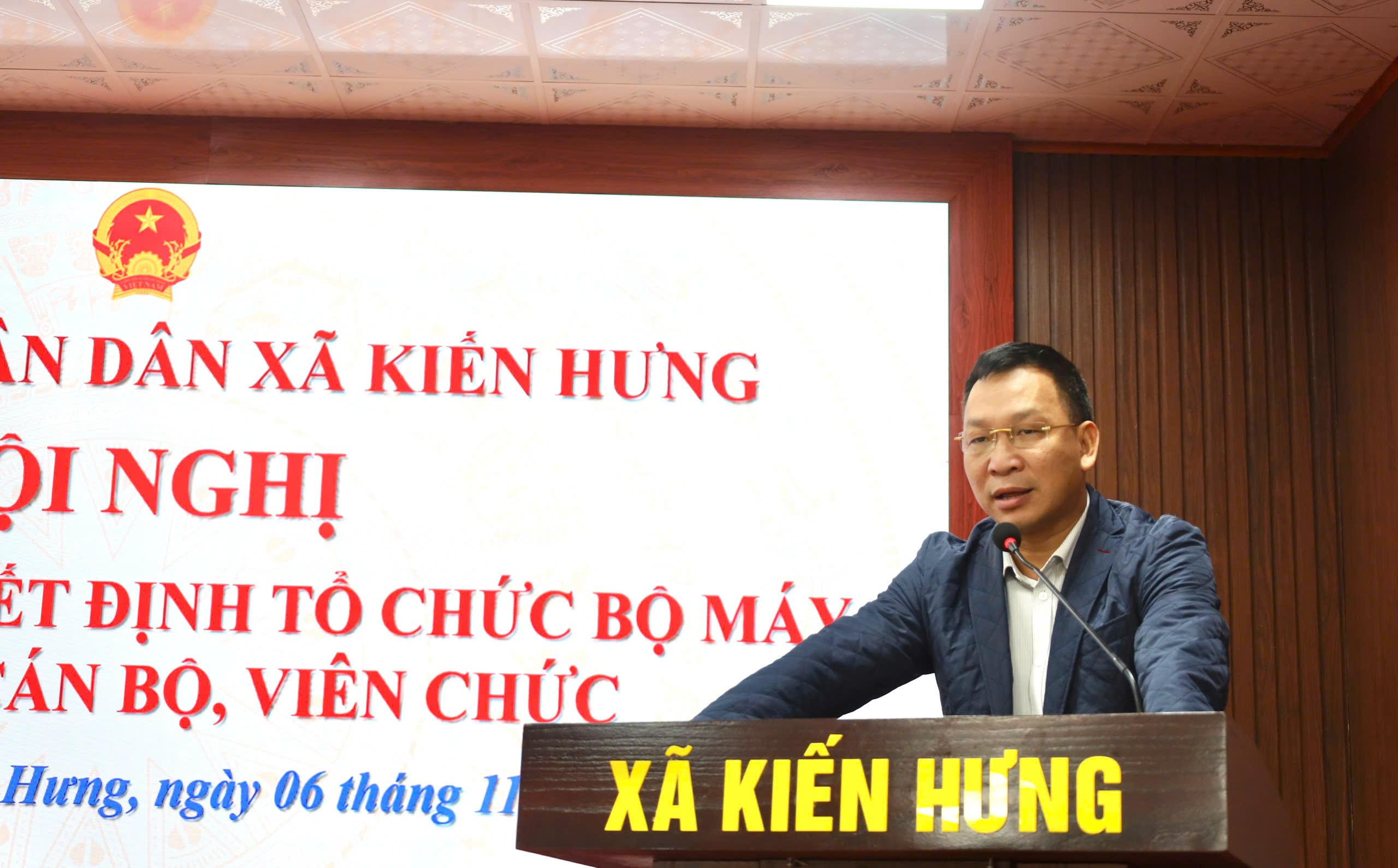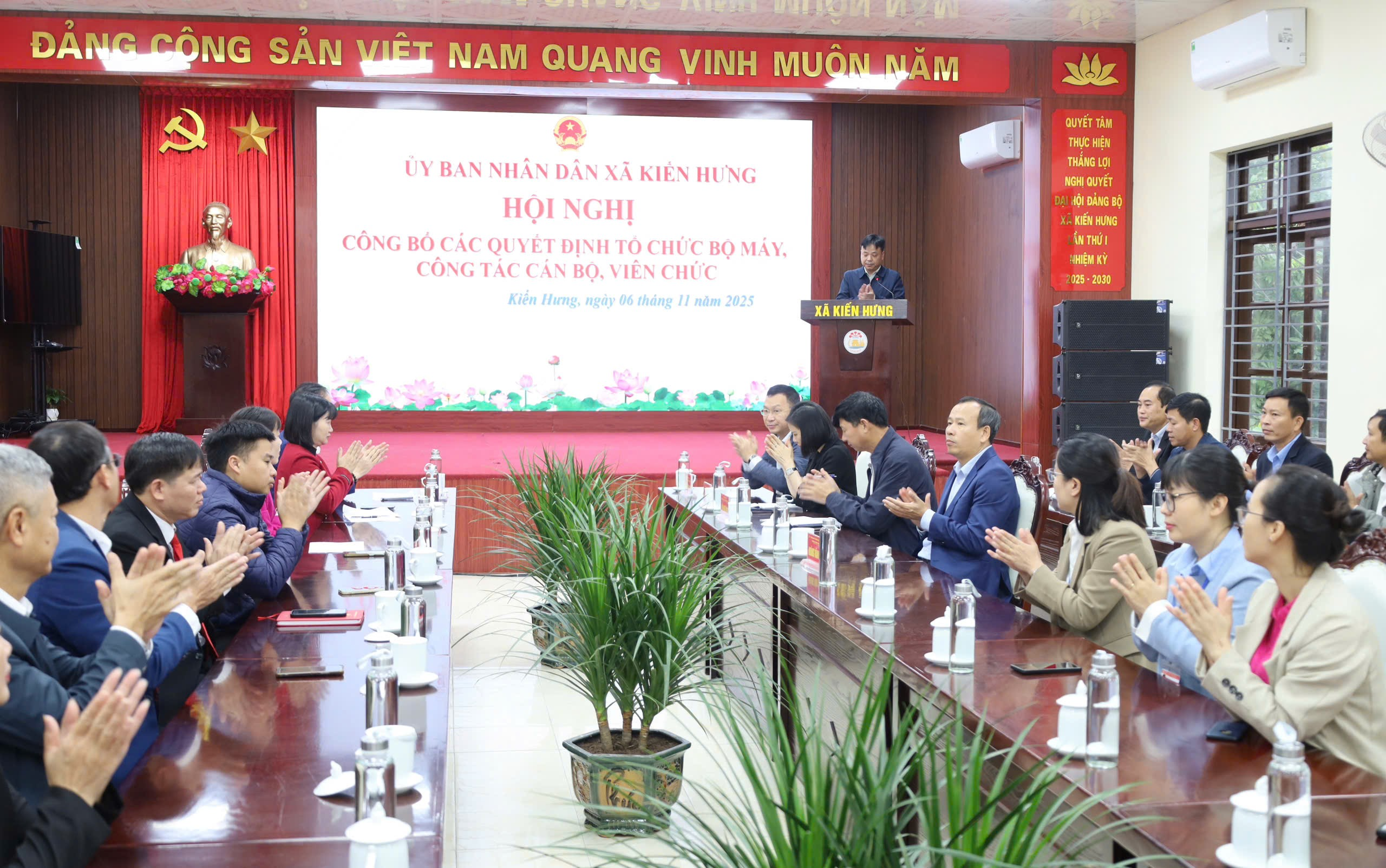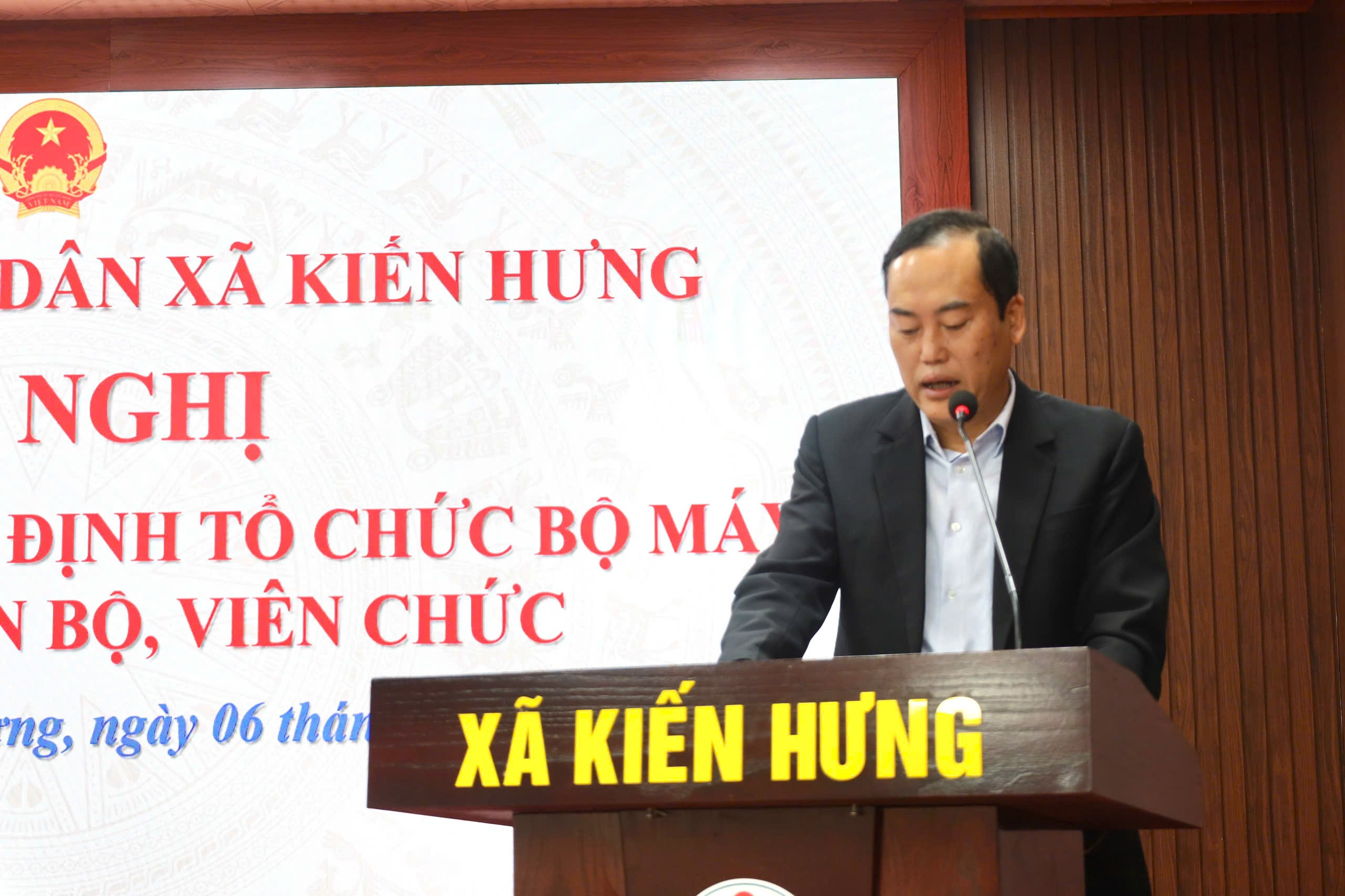 Sáng 6/11, UBND xã Kiến Hưng tổ chức Hội nghị công bố các quyết định về công tác tổ chức bộ máy, công tác cán bộ và tiếp nhận viên chức. Đồng chí Phạm Văn Định – Chủ tịch UBND xã chủ trì hội nghị.