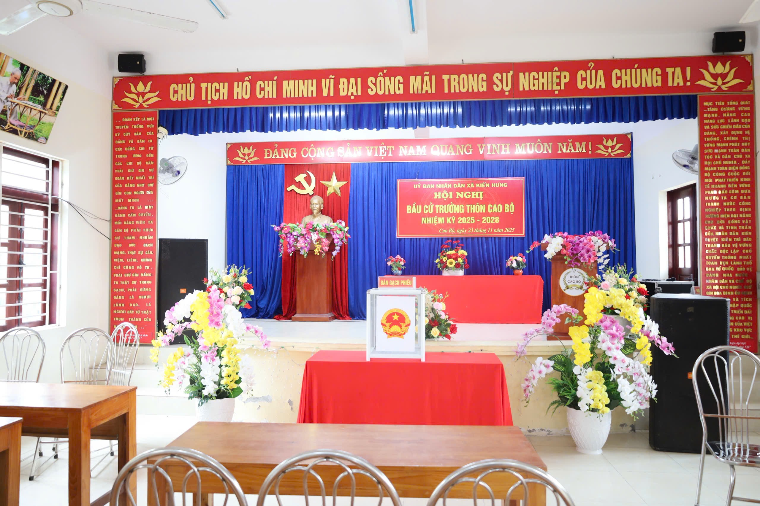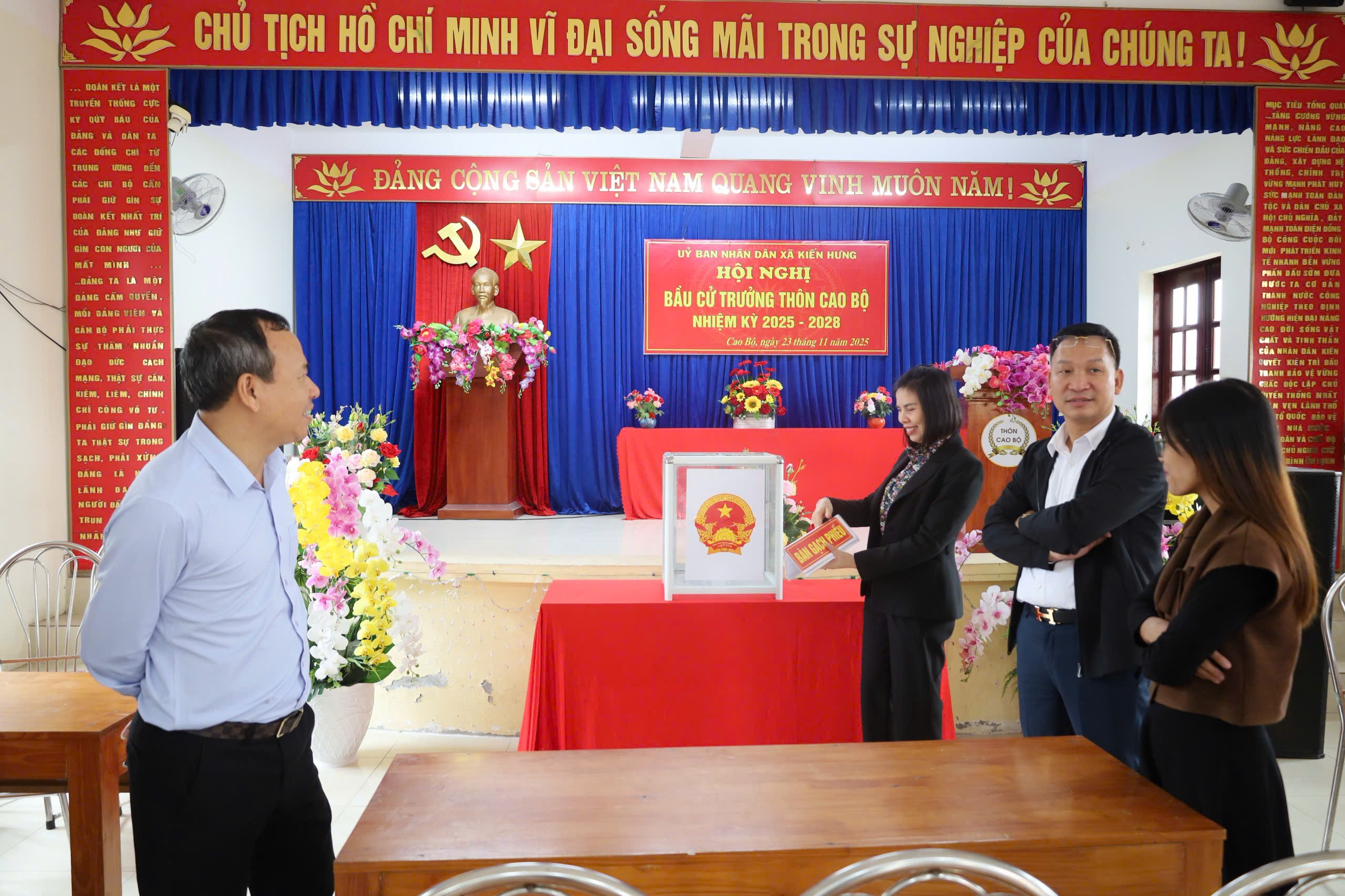 Chuẩn bị cho ngày bầu cử Trưởng thôn nhiệm kỳ 2025–2028 sẽ diễn ra vào 23/11 tới, sáng ngày 18/11, UBND xã Kiến Hưng tổ chức đoàn kiểm tra công tác chuẩn bị tại 12 thôn trên địa bàn.