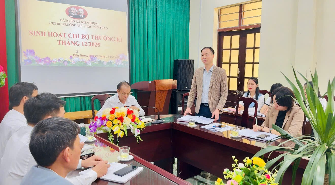Trong các ngày 02 và 03/12/2025, đồng chí Vũ Thanh Sơn - Phó Bí thư Thường trực Đảng ủy xã Kiến Hưng đã trực tiếp dự sinh hoạt thường kỳ tại một số chi bộ trực thuộc Đảng ủy xã, gồm: Chi bộ thôn Đa Ngư, Chi bộ Trường Tiểu học Tân Trào và Chi bộ Trường Tiểu học Đại Hà.