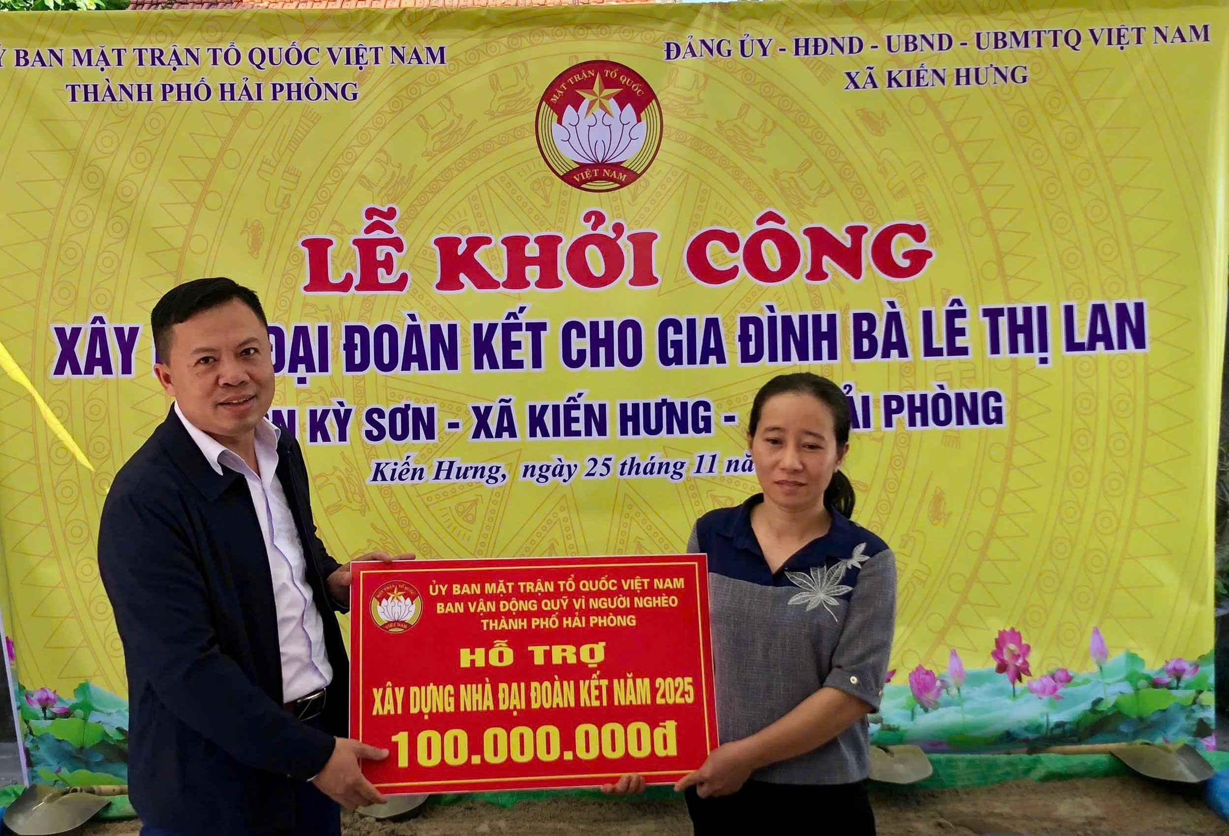 Sáng ngày 25/11, Ban Thường trực Ủy ban MTTQ Việt Nam xã Kiến Hưng tổ chức khởi công xây nhà Đại đoàn kết cho 02 hộ có hoàn cảnh đặc biệt khó khăn tại thôn Đương Thắng và thôn Kỳ Sơn. Đây là hoạt động thiết thực, thể hiện tinh thần tương thân tương ái, lan tỏa giá trị nhân văn sâu sắc trong cộng đồng.